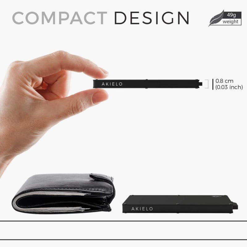 - Zewnętrzne: 10,6 cm długości x 6,7 cm szerokości x 0,8 cm grubości
