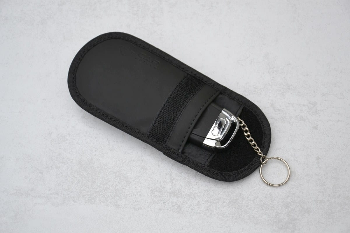- Aby zabezpieczyć samochód: otwórz klapkę i umieść kluczyk w tylnej, aktywnej kieszonce. Po zamknięciu klapki funkcje auta zostaną zablokowane (stracisz możliwość otwarcia / zamknięcia drzwi oraz uruchomienia silnika),