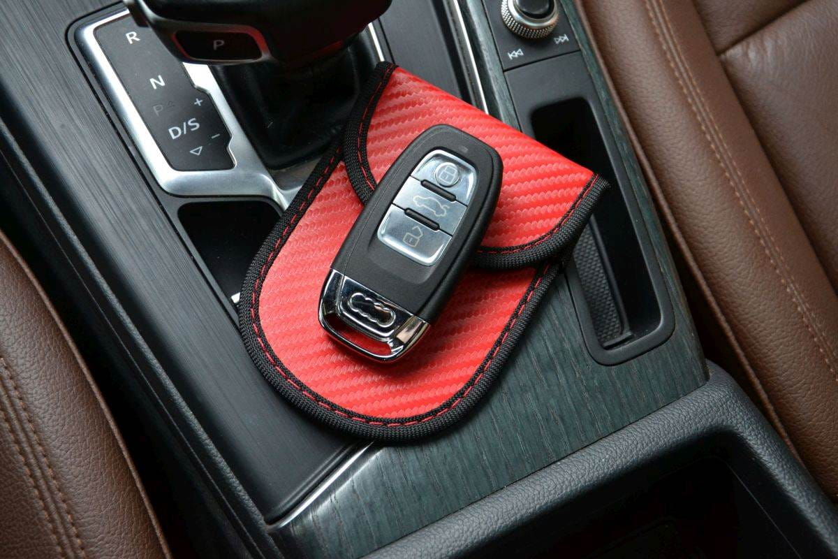- Aby zabezpieczyć samochód: otwórz klapkę i umieść kluczyk w tylnej, aktywnej kieszonce. Po zamknięciu klapki funkcje auta zostaną zablokowane (stracisz możliwość otwarcia / zamknięcia drzwi oraz uruchomienia silnika),